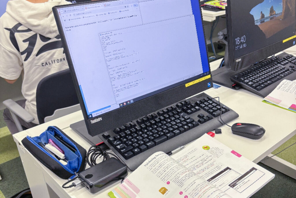 「鳥居ゼミでは、教科書でプログラミングの基礎を学びながら、ホームページ作成などを通して理解を深めていく活動をしています。教科書に書いてあるコードを出力し提出するなどの課題に取り組み、単にコードを覚えるだけでなく、実際に手を動かすことで理論と実践を結びつけることができます。」