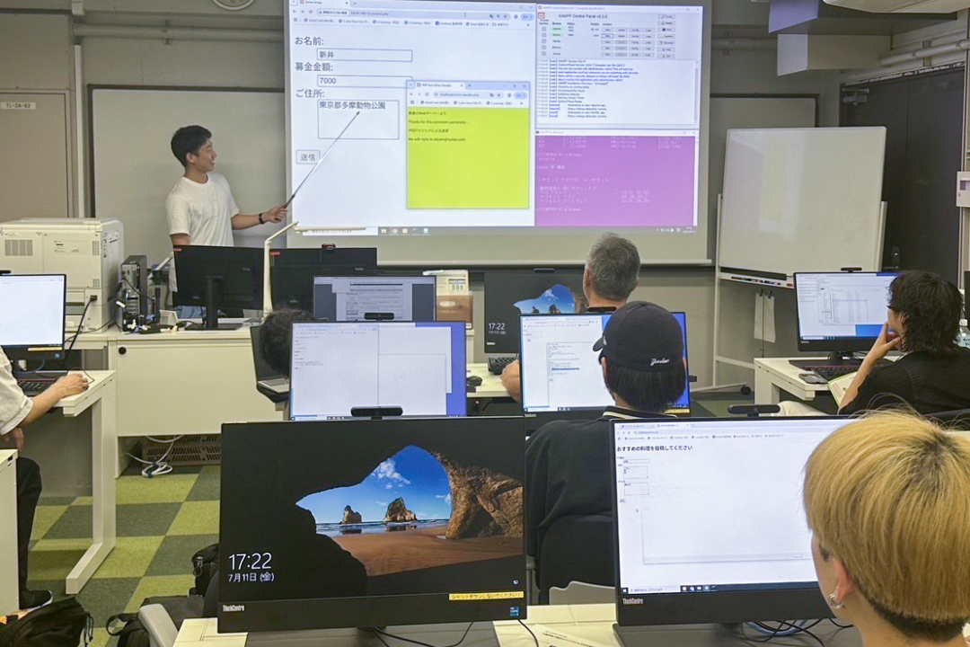 「鳥居ゼミでは、教科書でプログラミングの基礎を学びながら、ホームページ作成などを通して理解を深めていく活動をしています。教科書に書いてあるコードを出力し提出するなどの課題に取り組み、単にコードを覚えるだけでなく、実際に手を動かすことで理論と実践を結びつけることができます。」