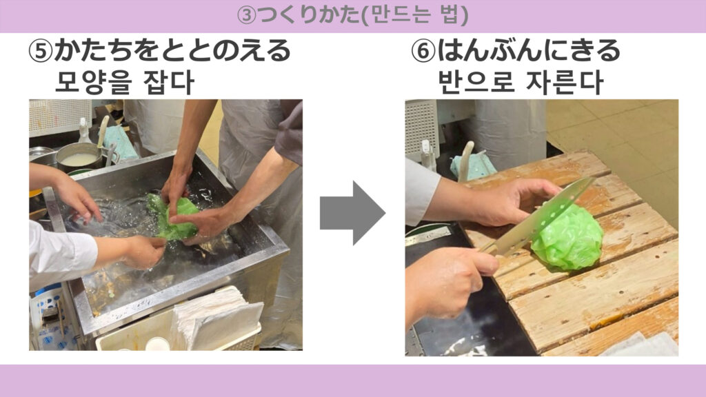 発表テーマには「食品サンプル」を選びました。韓国にも食品サンプルはありますが、どのように作られているのかや実際の手触りまではあまり知られていないのではないかと考え、題材にしました。資料作成や実物を準備するため、東京・合羽橋の元祖食品サンプル屋を訪れ、天ぷらやレタスのサンプルを作りました。