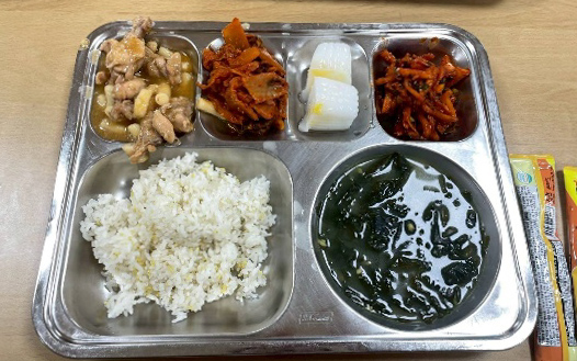 昼食には学校の給食をいただきました。辛味の効いたおかずやわかめスープ、デザートのゼリーなど、日本の給食とは異なる献立が並び、文化の違いを実感しました。私には少し辛く感じる味付けも、児童たちは慣れている様子で抵抗なく食べていました。ただし、全てを完食するわけではなく、食べられる分だけ食べ終えるとすぐに片づけ、校庭へ遊びに行っていました。日本の「残さず食べる」文化とは異なり、食を通じても生活習慣や価値観の違いを感じました。